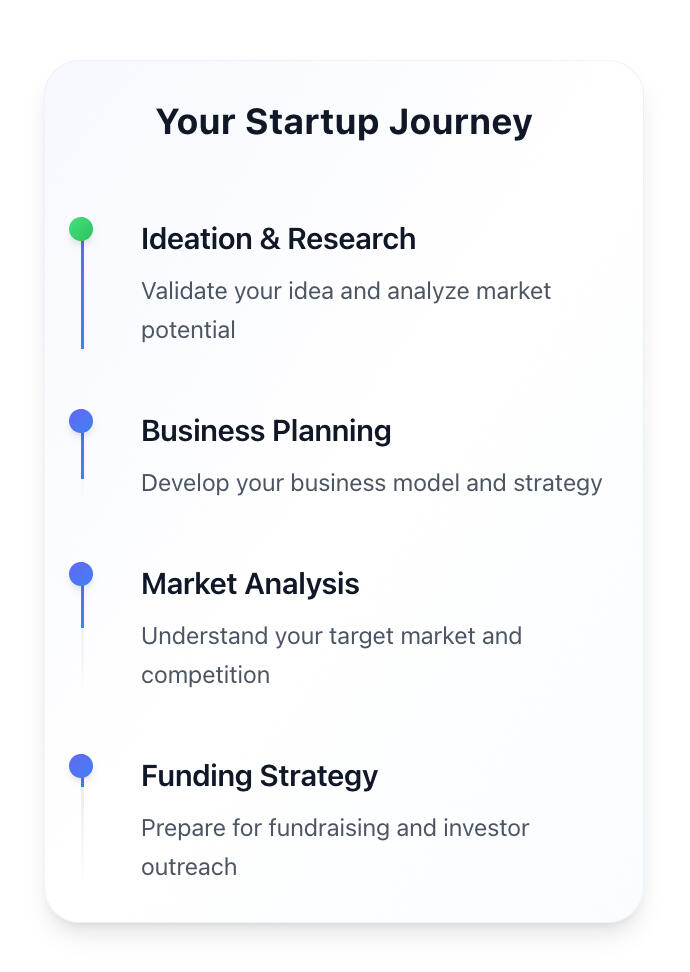 Tailored guidance on validating your idea, building a business plan, and creating a pitch deck— powered by AI.