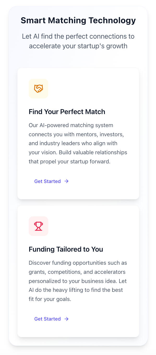 Take the first step toward transforming your business idea into reality. Connect with mentors, secure funding opportunities, and leverage AI-driven insights to fast-track your entrepreneurial journey.